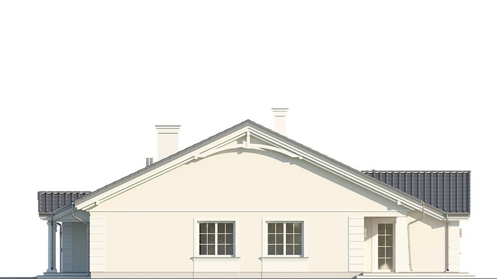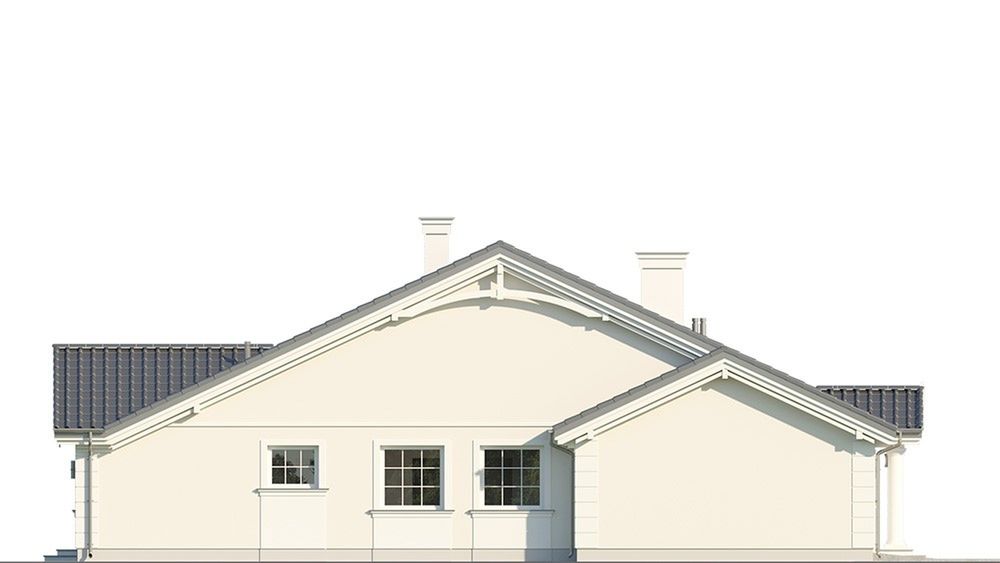 Graficzne opracowanie rzutów poglądowych widocznych na karcie projektu zostało wykonane przez Extradom.pl. Prezentowane przez Extradom.pl wizualizacje wykonane zostały przez autora projektu i należy poczytywać je jedynie za przykład i propozycję wykończenia, wizję architektoniczną autora projektu. Ostateczne wykończenie budynku może nastąpić na wiele sposobów. Szczegółowe rozwiązania zastosowane w oferowanej dokumentacji - w tym również ilość, lokalizacje i wygląd okien, drzwi, kominów - mogą w niewielkim stopniu różnić się od prezentowanej wizualizacji budynku.