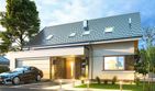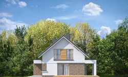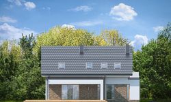 Graficzne opracowanie rzutów poglądowych widocznych na karcie projektu zostało wykonane przez Extradom.pl. Prezentowane przez Extradom.pl wizualizacje wykonane zostały przez autora projektu i należy poczytywać je jedynie za przykład i propozycję wykończenia, wizję architektoniczną autora projektu. Ostateczne wykończenie budynku może nastąpić na wiele sposobów. Szczegółowe rozwiązania zastosowane w oferowanej dokumentacji - w tym również ilość, lokalizacje i wygląd okien, drzwi, kominów - mogą w niewielkim stopniu różnić się od prezentowanej wizualizacji budynku.