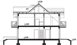 Graficzne opracowanie rzutów poglądowych widocznych na karcie projektu zostało wykonane przez Extradom.pl. Prezentowane przez Extradom.pl wizualizacje wykonane zostały przez autora projektu i należy poczytywać je jedynie za przykład i propozycję wykończenia, wizję architektoniczną autora projektu. Ostateczne wykończenie budynku może nastąpić na wiele sposobów. Szczegółowe rozwiązania zastosowane w oferowanej dokumentacji - w tym również ilość, lokalizacje i wygląd okien, drzwi, kominów - mogą w niewielkim stopniu różnić się od prezentowanej wizualizacji budynku.