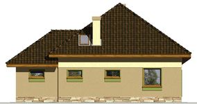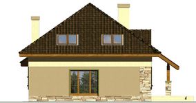 Graficzne opracowanie rzutów poglądowych widocznych na karcie projektu zostało wykonane przez Extradom.pl. Prezentowane przez Extradom.pl wizualizacje wykonane zostały przez autora projektu i należy poczytywać je jedynie za przykład i propozycję wykończenia, wizję architektoniczną autora projektu. Ostateczne wykończenie budynku może nastąpić na wiele sposobów. Szczegółowe rozwiązania zastosowane w oferowanej dokumentacji - w tym również ilość, lokalizacje i wygląd okien, drzwi, kominów - mogą w niewielkim stopniu różnić się od prezentowanej wizualizacji budynku.