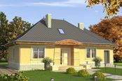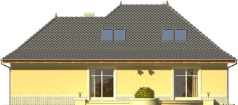 Graficzne opracowanie rzutów poglądowych widocznych na karcie projektu zostało wykonane przez Extradom.pl. Prezentowane przez Extradom.pl wizualizacje wykonane zostały przez autora projektu i należy poczytywać je jedynie za przykład i propozycję wykończenia, wizję architektoniczną autora projektu. Ostateczne wykończenie budynku może nastąpić na wiele sposobów. Szczegółowe rozwiązania zastosowane w oferowanej dokumentacji - w tym również ilość, lokalizacje i wygląd okien, drzwi, kominów - mogą w niewielkim stopniu różnić się od prezentowanej wizualizacji budynku.