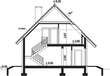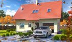 Graficzne opracowanie rzutów poglądowych widocznych na karcie projektu zostało wykonane przez Extradom.pl. Prezentowane przez Extradom.pl wizualizacje wykonane zostały przez autora projektu i należy poczytywać je jedynie za przykład i propozycję wykończenia, wizję architektoniczną autora projektu. Ostateczne wykończenie budynku może nastąpić na wiele sposobów. Szczegółowe rozwiązania zastosowane w oferowanej dokumentacji - w tym również ilość, lokalizacje i wygląd okien, drzwi, kominów - mogą w niewielkim stopniu różnić się od prezentowanej wizualizacji budynku.