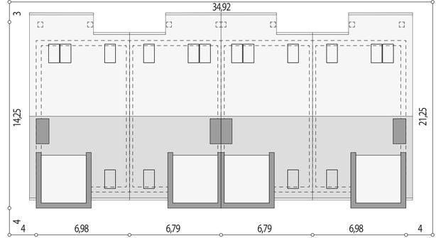 Graficzne opracowanie rzutów poglądowych widocznych na karcie projektu zostało wykonane przez Extradom.pl. Prezentowane przez Extradom.pl wizualizacje wykonane zostały przez autora projektu i należy poczytywać je jedynie za przykład i propozycję wykończenia, wizję architektoniczną autora projektu. Ostateczne wykończenie budynku może nastąpić na wiele sposobów. Szczegółowe rozwiązania zastosowane w oferowanej dokumentacji - w tym również ilość, lokalizacje i wygląd okien, drzwi, kominów - mogą w niewielkim stopniu różnić się od prezentowanej wizualizacji budynku.