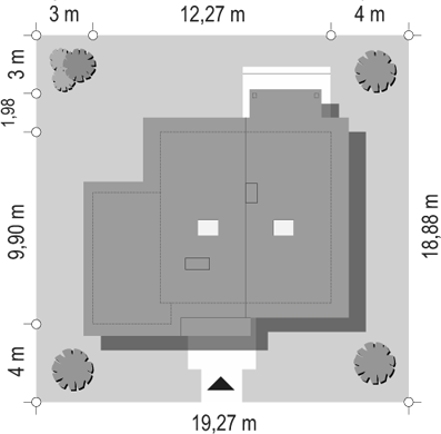 Fundamenty: betonowe wylewane. Ściany zewnętrzne: dwuwarstwowe beton komórkowy 24 + 15 styropian (lub wełna mineralna). Strop: Teriva. Elewacje: tynk cienkowarstwowy. Pokrycie dachu: blachodachówka lub dachówka. Nachylenie dachu: 30 stopni.