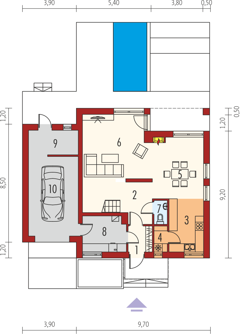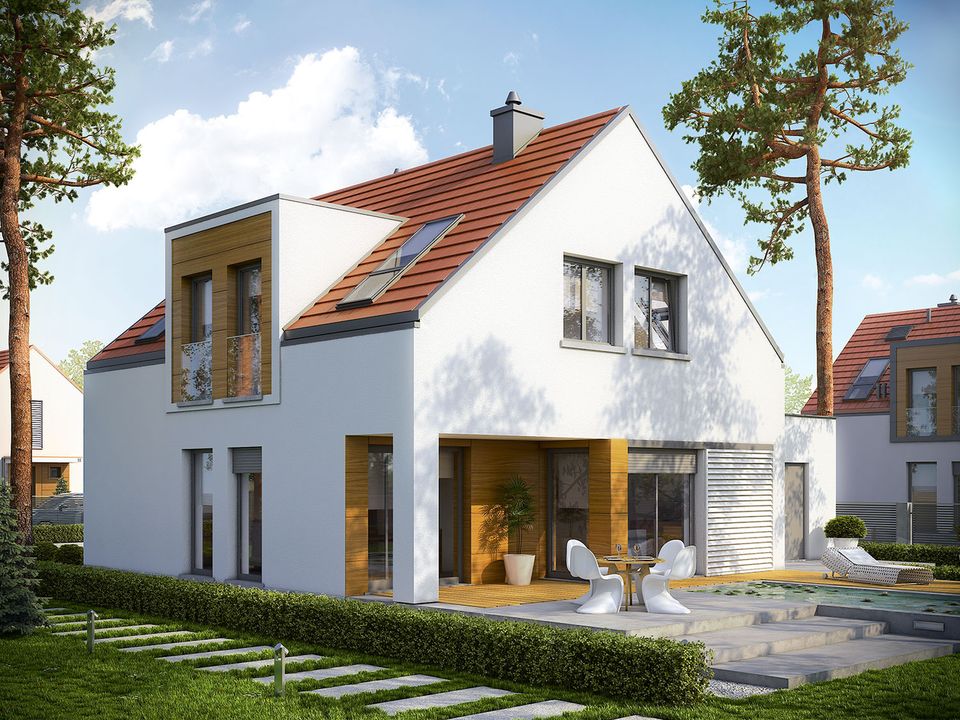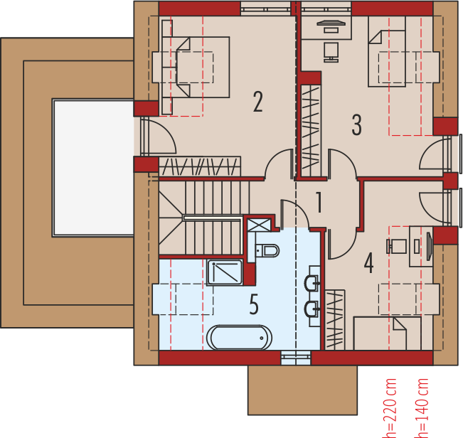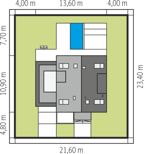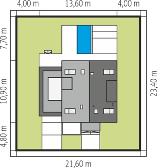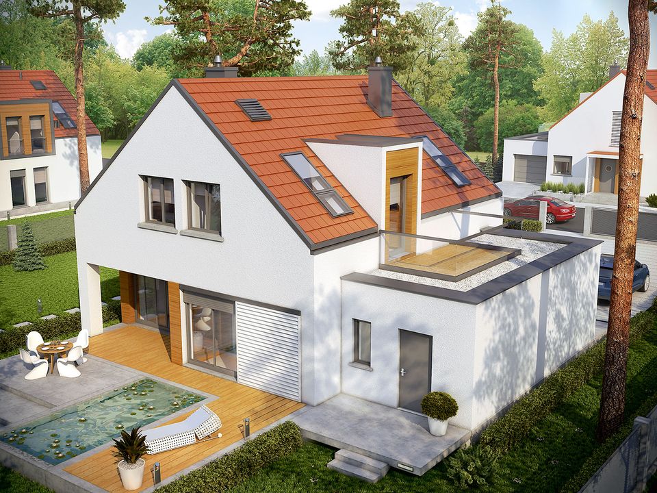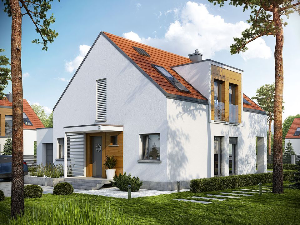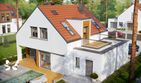 Graficzne opracowanie rzutów poglądowych widocznych na karcie projektu zostało wykonane przez Extradom.pl. Prezentowane przez Extradom.pl wizualizacje wykonane zostały przez autora projektu i należy poczytywać je jedynie za przykład i propozycję wykończenia, wizję architektoniczną autora projektu. Ostateczne wykończenie budynku może nastąpić na wiele sposobów. Szczegółowe rozwiązania zastosowane w oferowanej dokumentacji - w tym również ilość, lokalizacje i wygląd okien, drzwi, kominów - mogą w niewielkim stopniu różnić się od prezentowanej wizualizacji budynku.