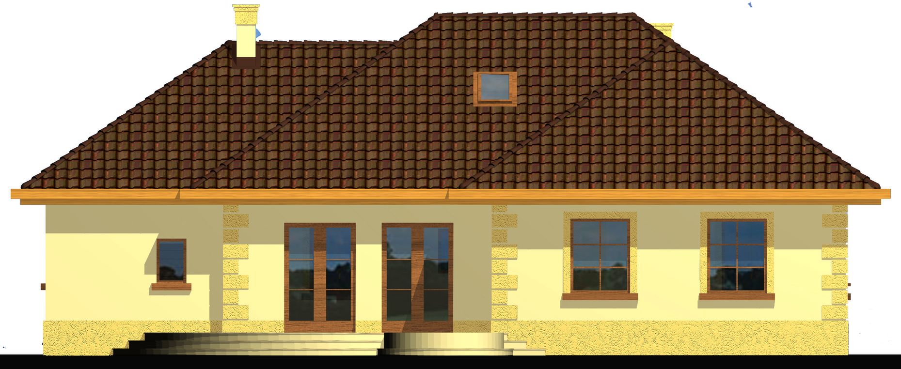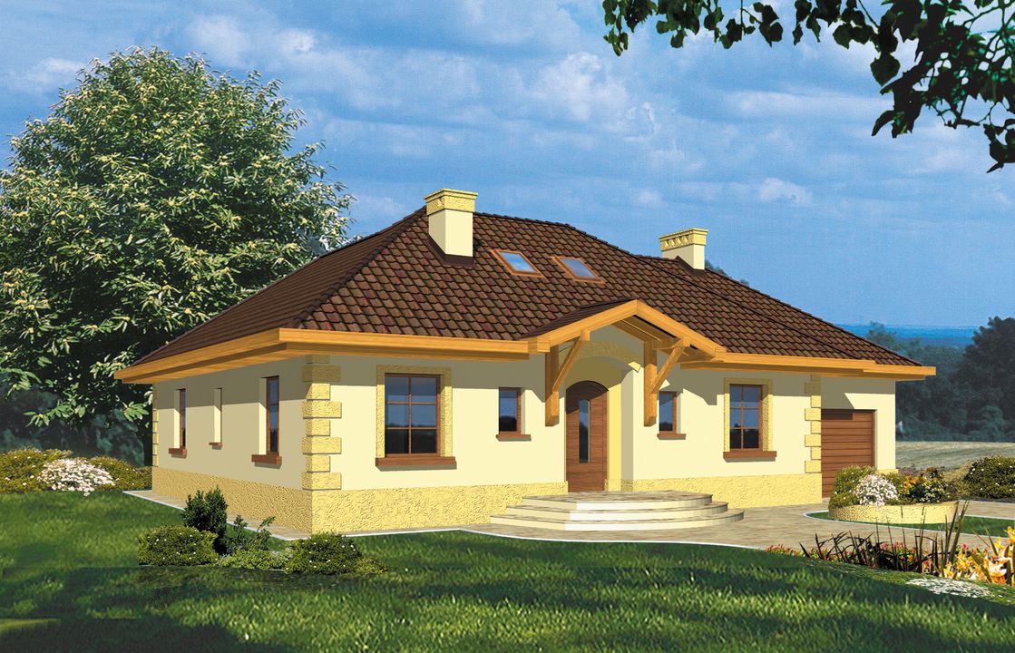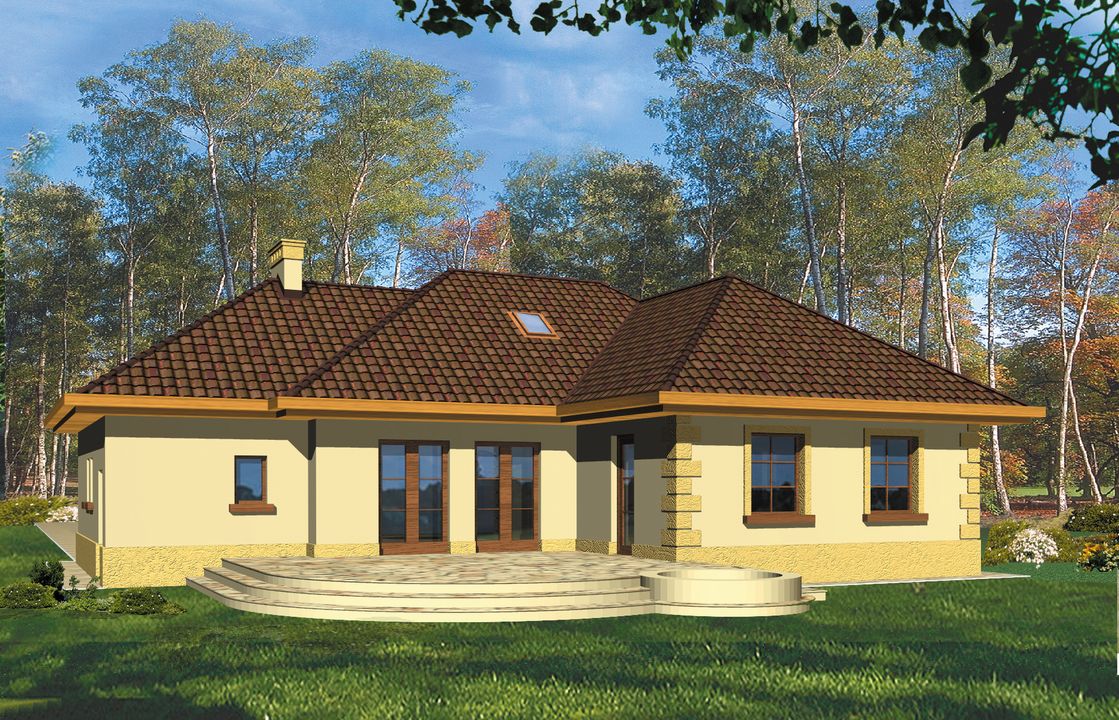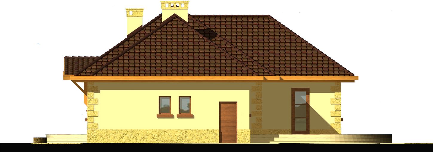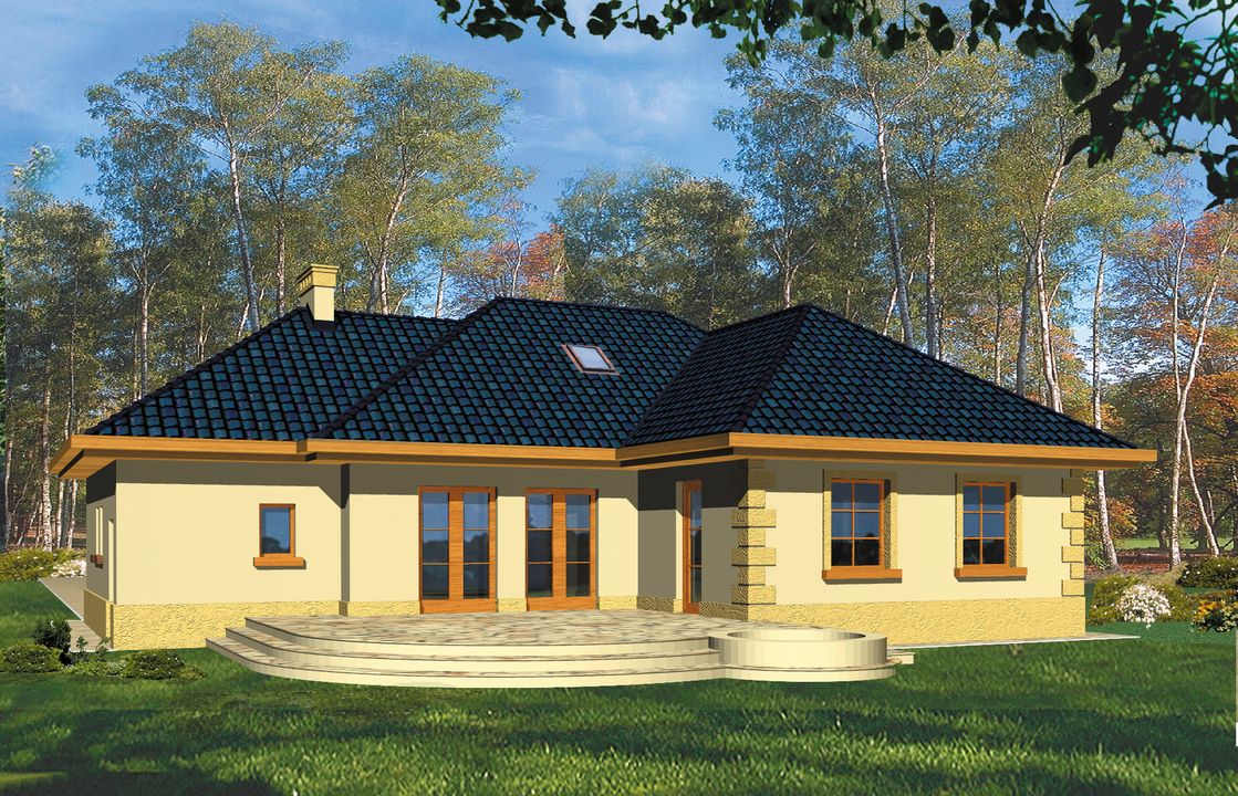 Graficzne opracowanie rzutów poglądowych widocznych na karcie projektu zostało wykonane przez Extradom.pl. Prezentowane przez Extradom.pl wizualizacje wykonane zostały przez autora projektu i należy poczytywać je jedynie za przykład i propozycję wykończenia, wizję architektoniczną autora projektu. Ostateczne wykończenie budynku może nastąpić na wiele sposobów. Szczegółowe rozwiązania zastosowane w oferowanej dokumentacji - w tym również ilość, lokalizacje i wygląd okien, drzwi, kominów - mogą w niewielkim stopniu różnić się od prezentowanej wizualizacji budynku.