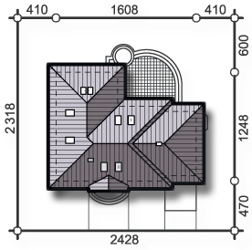 Graficzne opracowanie rzutów poglądowych widocznych na karcie projektu zostało wykonane przez Extradom.pl. Prezentowane przez Extradom.pl wizualizacje wykonane zostały przez autora projektu i należy poczytywać je jedynie za przykład i propozycję wykończenia, wizję architektoniczną autora projektu. Ostateczne wykończenie budynku może nastąpić na wiele sposobów. Szczegółowe rozwiązania zastosowane w oferowanej dokumentacji - w tym również ilość, lokalizacje i wygląd okien, drzwi, kominów - mogą w niewielkim stopniu różnić się od prezentowanej wizualizacji budynku.