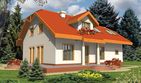 Graficzne opracowanie rzutów poglądowych widocznych na karcie projektu zostało wykonane przez Extradom.pl. Prezentowane przez Extradom.pl wizualizacje wykonane zostały przez autora projektu i należy poczytywać je jedynie za przykład i propozycję wykończenia, wizję architektoniczną autora projektu. Ostateczne wykończenie budynku może nastąpić na wiele sposobów. Szczegółowe rozwiązania zastosowane w oferowanej dokumentacji - w tym również ilość, lokalizacje i wygląd okien, drzwi, kominów - mogą w niewielkim stopniu różnić się od prezentowanej wizualizacji budynku.