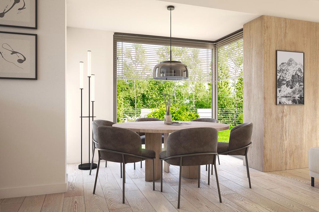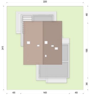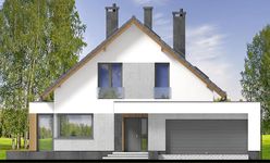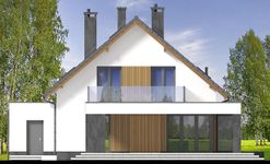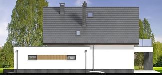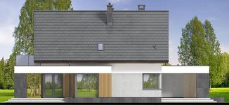 Graficzne opracowanie rzutów poglądowych widocznych na karcie projektu zostało wykonane przez Extradom.pl. Prezentowane przez Extradom.pl wizualizacje wykonane zostały przez autora projektu i należy poczytywać je jedynie za przykład i propozycję wykończenia, wizję architektoniczną autora projektu. Ostateczne wykończenie budynku może nastąpić na wiele sposobów. Szczegółowe rozwiązania zastosowane w oferowanej dokumentacji - w tym również ilość, lokalizacje i wygląd okien, drzwi, kominów - mogą w niewielkim stopniu różnić się od prezentowanej wizualizacji budynku.