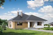 Graficzne opracowanie rzutów poglądowych widocznych na karcie projektu zostało wykonane przez Extradom.pl. Prezentowane przez Extradom.pl wizualizacje wykonane zostały przez autora projektu i należy poczytywać je jedynie za przykład i propozycję wykończenia, wizję architektoniczną autora projektu. Ostateczne wykończenie budynku może nastąpić na wiele sposobów. Szczegółowe rozwiązania zastosowane w oferowanej dokumentacji - w tym również ilość, lokalizacje i wygląd okien, drzwi, kominów - mogą w niewielkim stopniu różnić się od prezentowanej wizualizacji budynku.