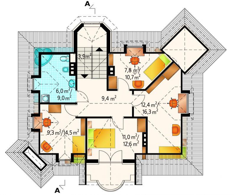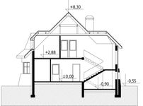 Graficzne opracowanie rzutów poglądowych widocznych na karcie projektu zostało wykonane przez Extradom.pl. Prezentowane przez Extradom.pl wizualizacje wykonane zostały przez autora projektu i należy poczytywać je jedynie za przykład i propozycję wykończenia, wizję architektoniczną autora projektu. Ostateczne wykończenie budynku może nastąpić na wiele sposobów. Szczegółowe rozwiązania zastosowane w oferowanej dokumentacji - w tym również ilość, lokalizacje i wygląd okien, drzwi, kominów - mogą w niewielkim stopniu różnić się od prezentowanej wizualizacji budynku.