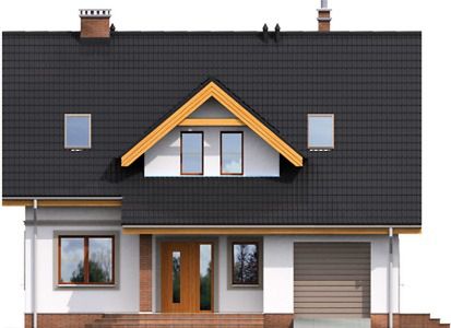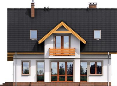 Graficzne opracowanie rzutów poglądowych widocznych na karcie projektu zostało wykonane przez Extradom.pl. Prezentowane przez Extradom.pl wizualizacje wykonane zostały przez autora projektu i należy poczytywać je jedynie za przykład i propozycję wykończenia, wizję architektoniczną autora projektu. Ostateczne wykończenie budynku może nastąpić na wiele sposobów. Szczegółowe rozwiązania zastosowane w oferowanej dokumentacji - w tym również ilość, lokalizacje i wygląd okien, drzwi, kominów - mogą w niewielkim stopniu różnić się od prezentowanej wizualizacji budynku.