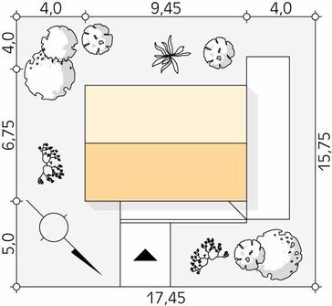 Graficzne opracowanie rzutów poglądowych widocznych na karcie projektu zostało wykonane przez Extradom.pl. Prezentowane przez Extradom.pl wizualizacje wykonane zostały przez autora projektu i należy poczytywać je jedynie za przykład i propozycję wykończenia, wizję architektoniczną autora projektu. Ostateczne wykończenie budynku może nastąpić na wiele sposobów. Szczegółowe rozwiązania zastosowane w oferowanej dokumentacji - w tym również ilość, lokalizacje i wygląd okien, drzwi, kominów - mogą w niewielkim stopniu różnić się od prezentowanej wizualizacji budynku.