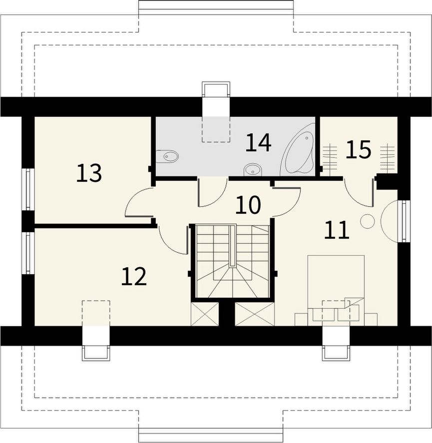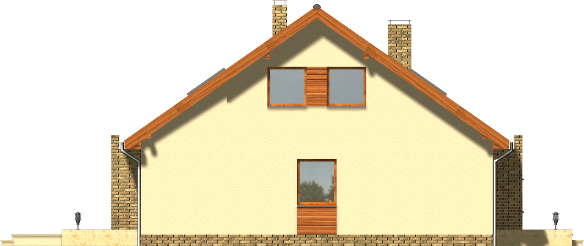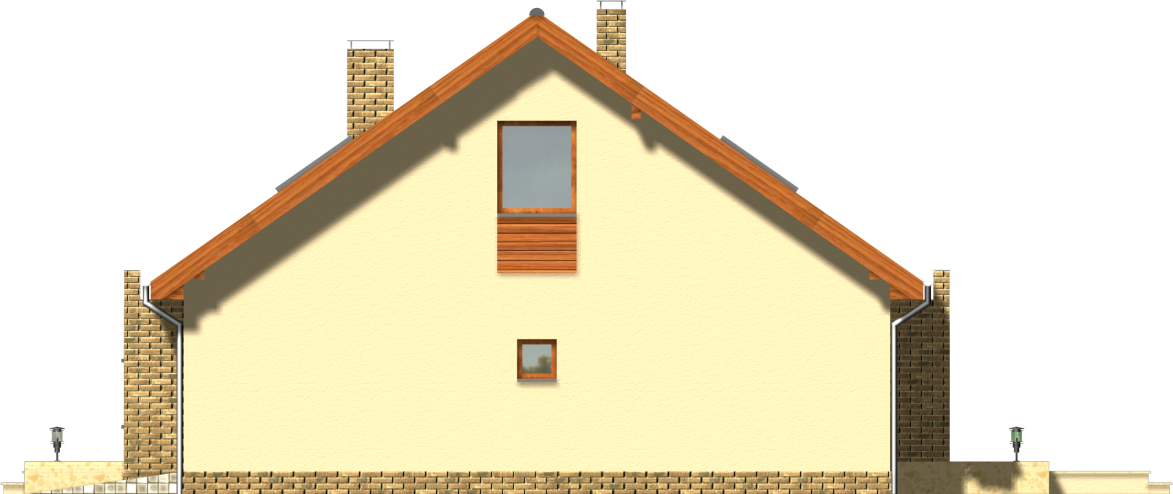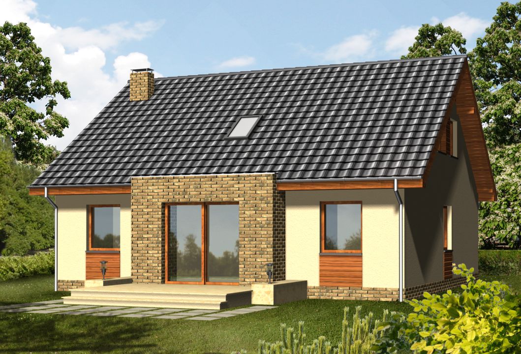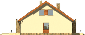 Graficzne opracowanie rzutów poglądowych widocznych na karcie projektu zostało wykonane przez Extradom.pl. Prezentowane przez Extradom.pl wizualizacje wykonane zostały przez autora projektu i należy poczytywać je jedynie za przykład i propozycję wykończenia, wizję architektoniczną autora projektu. Ostateczne wykończenie budynku może nastąpić na wiele sposobów. Szczegółowe rozwiązania zastosowane w oferowanej dokumentacji - w tym również ilość, lokalizacje i wygląd okien, drzwi, kominów - mogą w niewielkim stopniu różnić się od prezentowanej wizualizacji budynku.