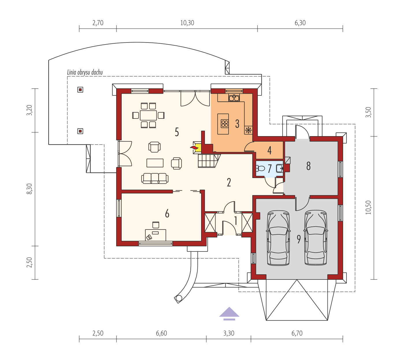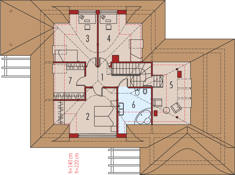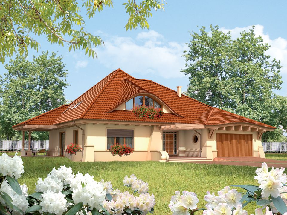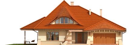 Graficzne opracowanie rzutów poglądowych widocznych na karcie projektu zostało wykonane przez Extradom.pl. Prezentowane przez Extradom.pl wizualizacje wykonane zostały przez autora projektu i należy poczytywać je jedynie za przykład i propozycję wykończenia, wizję architektoniczną autora projektu. Ostateczne wykończenie budynku może nastąpić na wiele sposobów. Szczegółowe rozwiązania zastosowane w oferowanej dokumentacji - w tym również ilość, lokalizacje i wygląd okien, drzwi, kominów - mogą w niewielkim stopniu różnić się od prezentowanej wizualizacji budynku.