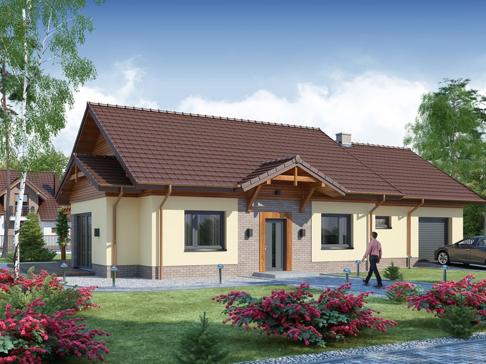 Wraz z żoną zdecydowaliśmy się na realizację projektu domu Petroniusz WRW1203, który odpowiadał nam właściwie pod każdym względem. Od początku bowiem interesował nas budynek o prostej konstrukcji oraz nie za dużym metrażu. Takie rozwiązania znacząco wpływają na ekonomiczność budowy i po wycenie firmy deweloperskiej okazało się, że inwestycja faktycznie nie pochłonie wielu środków finansowych. Istotny wpływ na nasz wybór miał również garaż w bryle oraz układ pomieszczeń. Przewidziane w projekcie wnętrze wydało nam się funkcjonalne i w całości spełniało nasze oczekiwania.Jestem zadowolony z przebiegu całej inwestycji. Projekt Petroniusz WRW1203, został bardzo dobrze opracowany, a wprowadzenie w nim kilku modyfikacji wynikało jedynie z naszych indywidualnych preferencji. Fachowcy świetnie poradzili sobie na każdym etapie i wszystko odbyło się po naszej myśli. Niekiedy niekorzystne warunki pogodowe wymogły na nas wstrzymanie prac na niektórych etapach, jednak mimo to budowę udało nam się zakończyć w krótkim czasie. Postawienie oraz całościowe wykończenie nowego domu zajęło nam ok. 2 lat.Zgodnie z zaleceniami architekta ściany wymurowaliśmy z bloczków z betonu komórkowego Solbet. Postanowiliśmy jednak zmienić metodę wykonywania stropu. W oryginalnych założeniach jest ona dosyć kosztowna i w naszym przypadku zbędna, gdyż nie planujemy użytkowego zaadaptowania poddasza. Zdecydowaliśmy się więc na zastosowanie gotowej konstrukcji więźby ze stropem na drewnianych wiązarach. Dach pokryliśmy antracytową dachówką firmy Röben. Przy użyciu powyższych materiałów koszty inwestycji na etapie stanu surowego zamkniętego bez instalacji były niższe niż oszacowane w kosztorysie.Rozmieszczenie wnętrza zaproponowane w projekcie domu Petroniusz WRW1203 od początku nam się podobało. Uznaliśmy jednak, że lokalizacja kotłowni nie jest w tym przypadku do końca trafiona, tym bardziej iż za garażem przewidziano pomieszczenie gospodarcze, które naszym zdaniem o wiele lepiej nadaje się do tego celu. System grzewczy zainstalowaliśmy więc w pomieszczeniu z bezpośrednim wyjściem na zewnątrz, zaś pierwotną powierzchnię kotłowni przeznaczyliśmy na zrobienie praktycznej garderoby. Oprócz tego postanowiliśmy zmniejszyć o kilka centymetrów wymiary okien.Jesteśmy zadowoleni z wyboru projektu domu parterowego z garażem Petroniusz WRW1203. Zaplanowany w nim rozkład został funkcjonalnie przemyślany i tym samym jest w pełni komfortowy. Na chwilę obecną nie dostrzegam w nowym domu nic co chciałbym zmienić - wszystko podobało mi się w momencie podjęcia decyzji o jego zakupie i w dalszym ciągu jest on dla nas w całości satysfakcjonujący. Pozdrawiam.