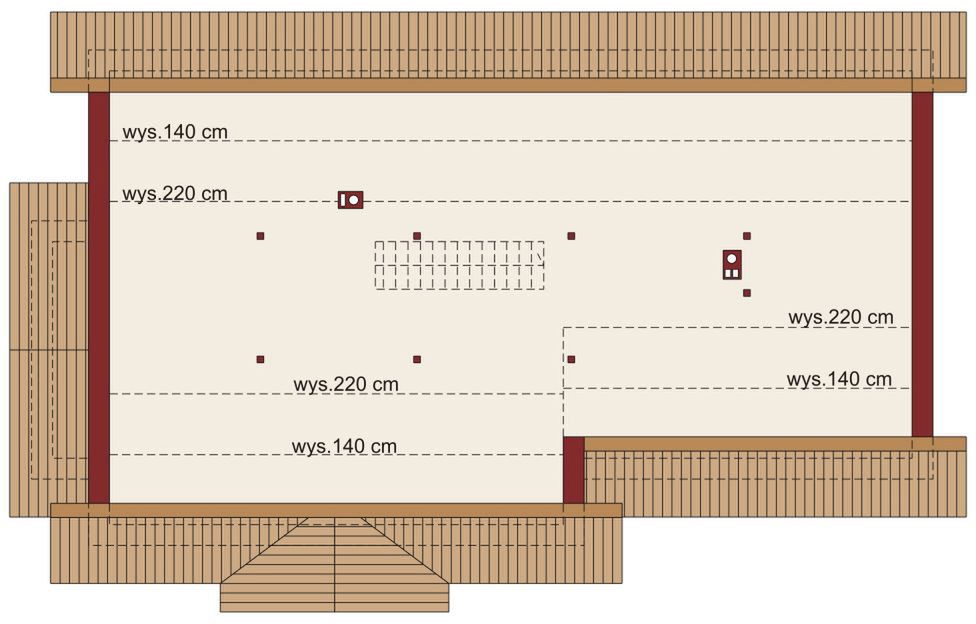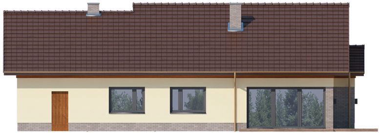 Graficzne opracowanie rzutów poglądowych widocznych na karcie projektu zostało wykonane przez Extradom.pl. Prezentowane przez Extradom.pl wizualizacje wykonane zostały przez autora projektu i należy poczytywać je jedynie za przykład i propozycję wykończenia, wizję architektoniczną autora projektu. Ostateczne wykończenie budynku może nastąpić na wiele sposobów. Szczegółowe rozwiązania zastosowane w oferowanej dokumentacji - w tym również ilość, lokalizacje i wygląd okien, drzwi, kominów - mogą w niewielkim stopniu różnić się od prezentowanej wizualizacji budynku.