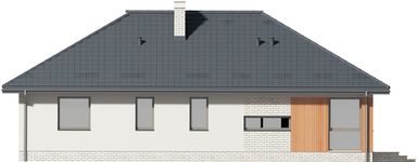 Graficzne opracowanie rzutów poglądowych widocznych na karcie projektu zostało wykonane przez Extradom.pl. Prezentowane przez Extradom.pl wizualizacje wykonane zostały przez autora projektu i należy poczytywać je jedynie za przykład i propozycję wykończenia, wizję architektoniczną autora projektu. Ostateczne wykończenie budynku może nastąpić na wiele sposobów. Szczegółowe rozwiązania zastosowane w oferowanej dokumentacji - w tym również ilość, lokalizacje i wygląd okien, drzwi, kominów - mogą w niewielkim stopniu różnić się od prezentowanej wizualizacji budynku.