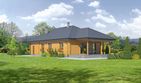 Graficzne opracowanie rzutów poglądowych widocznych na karcie projektu zostało wykonane przez Extradom.pl. Prezentowane przez Extradom.pl wizualizacje wykonane zostały przez autora projektu i należy poczytywać je jedynie za przykład i propozycję wykończenia, wizję architektoniczną autora projektu. Ostateczne wykończenie budynku może nastąpić na wiele sposobów. Szczegółowe rozwiązania zastosowane w oferowanej dokumentacji - w tym również ilość, lokalizacje i wygląd okien, drzwi, kominów - mogą w niewielkim stopniu różnić się od prezentowanej wizualizacji budynku.