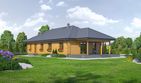 Graficzne opracowanie rzutów poglądowych widocznych na karcie projektu zostało wykonane przez Extradom.pl. Prezentowane przez Extradom.pl wizualizacje wykonane zostały przez autora projektu i należy poczytywać je jedynie za przykład i propozycję wykończenia, wizję architektoniczną autora projektu. Ostateczne wykończenie budynku może nastąpić na wiele sposobów. Szczegółowe rozwiązania zastosowane w oferowanej dokumentacji - w tym również ilość, lokalizacje i wygląd okien, drzwi, kominów - mogą w niewielkim stopniu różnić się od prezentowanej wizualizacji budynku.