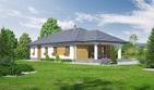 Graficzne opracowanie rzutów poglądowych widocznych na karcie projektu zostało wykonane przez Extradom.pl. Prezentowane przez Extradom.pl wizualizacje wykonane zostały przez autora projektu i należy poczytywać je jedynie za przykład i propozycję wykończenia, wizję architektoniczną autora projektu. Ostateczne wykończenie budynku może nastąpić na wiele sposobów. Szczegółowe rozwiązania zastosowane w oferowanej dokumentacji - w tym również ilość, lokalizacje i wygląd okien, drzwi, kominów - mogą w niewielkim stopniu różnić się od prezentowanej wizualizacji budynku.