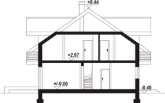Wysokość ścianki kolankowej: 1.51 m. Strop: płyta żelbetowa. Pokrycie dachu: dachówka ceramiczna. Ściany zewnętrzne: pustaki ceramiczne + styropian. Ściany wewnętrzne: pustaki ceramiczne. Typ ogrzewania: kocioł gazowy.
