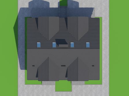 Graficzne opracowanie rzutów poglądowych widocznych na karcie projektu zostało wykonane przez Extradom.pl. Prezentowane przez Extradom.pl wizualizacje wykonane zostały przez autora projektu i należy poczytywać je jedynie za przykład i propozycję wykończenia, wizję architektoniczną autora projektu. Ostateczne wykończenie budynku może nastąpić na wiele sposobów. Szczegółowe rozwiązania zastosowane w oferowanej dokumentacji - w tym również ilość, lokalizacje i wygląd okien, drzwi, kominów - mogą w niewielkim stopniu różnić się od prezentowanej wizualizacji budynku.