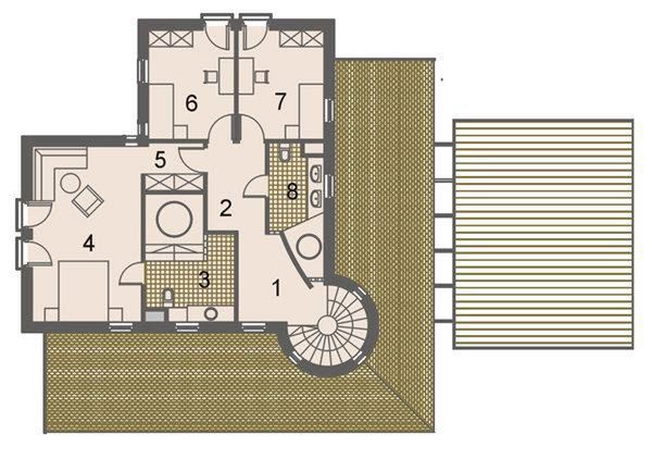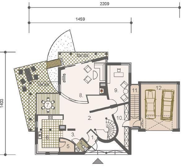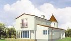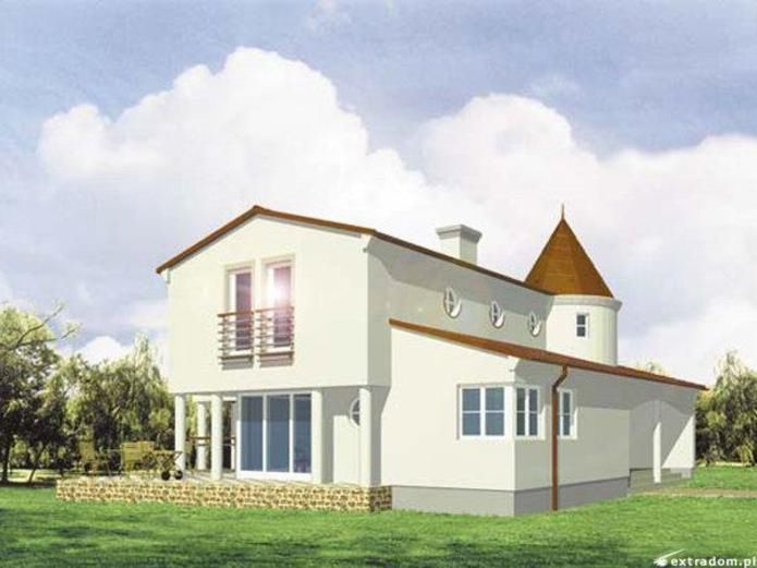 Graficzne opracowanie rzutów poglądowych widocznych na karcie projektu zostało wykonane przez Extradom.pl. Prezentowane przez Extradom.pl wizualizacje wykonane zostały przez autora projektu i należy poczytywać je jedynie za przykład i propozycję wykończenia, wizję architektoniczną autora projektu. Ostateczne wykończenie budynku może nastąpić na wiele sposobów. Szczegółowe rozwiązania zastosowane w oferowanej dokumentacji - w tym również ilość, lokalizacje i wygląd okien, drzwi, kominów - mogą w niewielkim stopniu różnić się od prezentowanej wizualizacji budynku.