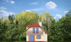 Graficzne opracowanie rzutów poglądowych widocznych na karcie projektu zostało wykonane przez Extradom.pl. Prezentowane przez Extradom.pl wizualizacje wykonane zostały przez autora projektu i należy poczytywać je jedynie za przykład i propozycję wykończenia, wizję architektoniczną autora projektu. Ostateczne wykończenie budynku może nastąpić na wiele sposobów. Szczegółowe rozwiązania zastosowane w oferowanej dokumentacji - w tym również ilość, lokalizacje i wygląd okien, drzwi, kominów - mogą w niewielkim stopniu różnić się od prezentowanej wizualizacji budynku.