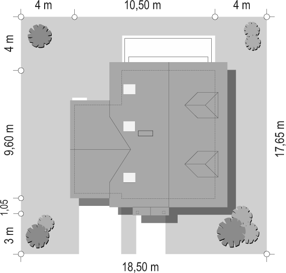 Graficzne opracowanie rzutów poglądowych widocznych na karcie projektu zostało wykonane przez Extradom.pl. Prezentowane przez Extradom.pl wizualizacje wykonane zostały przez autora projektu i należy poczytywać je jedynie za przykład i propozycję wykończenia, wizję architektoniczną autora projektu. Ostateczne wykończenie budynku może nastąpić na wiele sposobów. Szczegółowe rozwiązania zastosowane w oferowanej dokumentacji - w tym również ilość, lokalizacje i wygląd okien, drzwi, kominów - mogą w niewielkim stopniu różnić się od prezentowanej wizualizacji budynku.