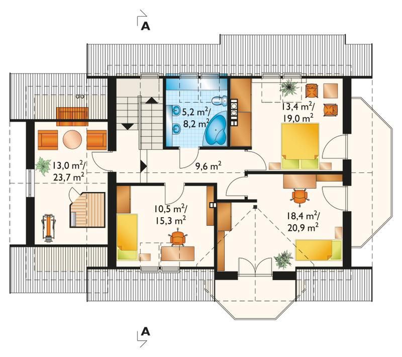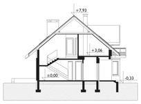 Graficzne opracowanie rzutów poglądowych widocznych na karcie projektu zostało wykonane przez Extradom.pl. Prezentowane przez Extradom.pl wizualizacje wykonane zostały przez autora projektu i należy poczytywać je jedynie za przykład i propozycję wykończenia, wizję architektoniczną autora projektu. Ostateczne wykończenie budynku może nastąpić na wiele sposobów. Szczegółowe rozwiązania zastosowane w oferowanej dokumentacji - w tym również ilość, lokalizacje i wygląd okien, drzwi, kominów - mogą w niewielkim stopniu różnić się od prezentowanej wizualizacji budynku.