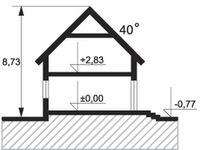 Ściany: 2-warstwowe - pustak ceramiczny + styropian. Stropy: żelbetowe, wylewane. Dach: dachówka ceramiczna CREATON, kąt nachylenia 40°. Ogrzewanie: gazowe.