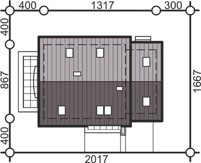 Graficzne opracowanie rzutów poglądowych widocznych na karcie projektu zostało wykonane przez Extradom.pl. Prezentowane przez Extradom.pl wizualizacje wykonane zostały przez autora projektu i należy poczytywać je jedynie za przykład i propozycję wykończenia, wizję architektoniczną autora projektu. Ostateczne wykończenie budynku może nastąpić na wiele sposobów. Szczegółowe rozwiązania zastosowane w oferowanej dokumentacji - w tym również ilość, lokalizacje i wygląd okien, drzwi, kominów - mogą w niewielkim stopniu różnić się od prezentowanej wizualizacji budynku.