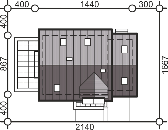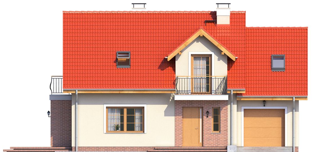 Graficzne opracowanie rzutów poglądowych widocznych na karcie projektu zostało wykonane przez Extradom.pl. Prezentowane przez Extradom.pl wizualizacje wykonane zostały przez autora projektu i należy poczytywać je jedynie za przykład i propozycję wykończenia, wizję architektoniczną autora projektu. Ostateczne wykończenie budynku może nastąpić na wiele sposobów. Szczegółowe rozwiązania zastosowane w oferowanej dokumentacji - w tym również ilość, lokalizacje i wygląd okien, drzwi, kominów - mogą w niewielkim stopniu różnić się od prezentowanej wizualizacji budynku.