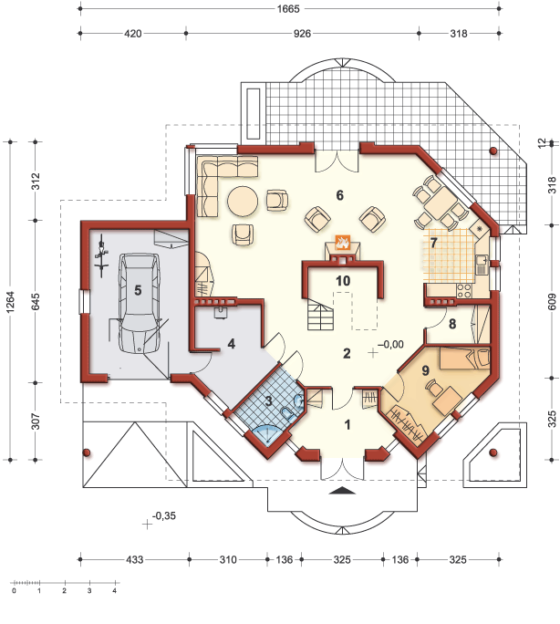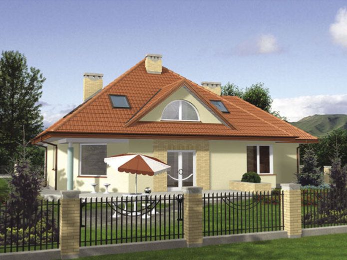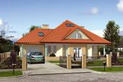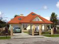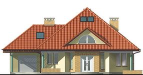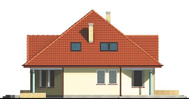 Graficzne opracowanie rzutów poglądowych widocznych na karcie projektu zostało wykonane przez Extradom.pl. Prezentowane przez Extradom.pl wizualizacje wykonane zostały przez autora projektu i należy poczytywać je jedynie za przykład i propozycję wykończenia, wizję architektoniczną autora projektu. Ostateczne wykończenie budynku może nastąpić na wiele sposobów. Szczegółowe rozwiązania zastosowane w oferowanej dokumentacji - w tym również ilość, lokalizacje i wygląd okien, drzwi, kominów - mogą w niewielkim stopniu różnić się od prezentowanej wizualizacji budynku.
