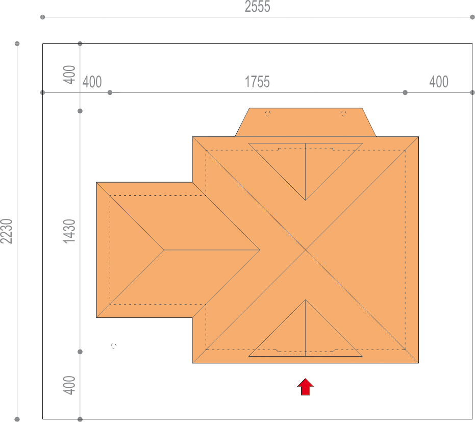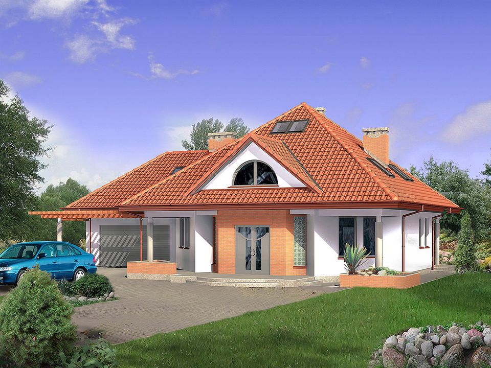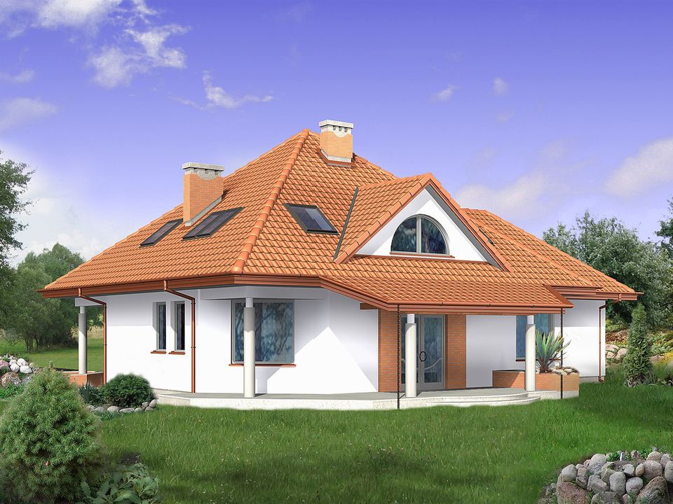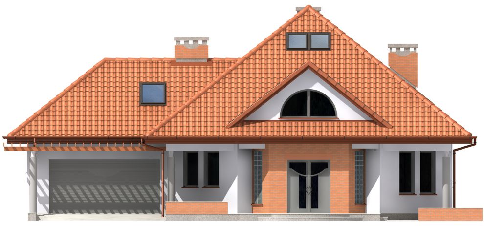 Graficzne opracowanie rzutów poglądowych widocznych na karcie projektu zostało wykonane przez Extradom.pl. Prezentowane przez Extradom.pl wizualizacje wykonane zostały przez autora projektu i należy poczytywać je jedynie za przykład i propozycję wykończenia, wizję architektoniczną autora projektu. Ostateczne wykończenie budynku może nastąpić na wiele sposobów. Szczegółowe rozwiązania zastosowane w oferowanej dokumentacji - w tym również ilość, lokalizacje i wygląd okien, drzwi, kominów - mogą w niewielkim stopniu różnić się od prezentowanej wizualizacji budynku.