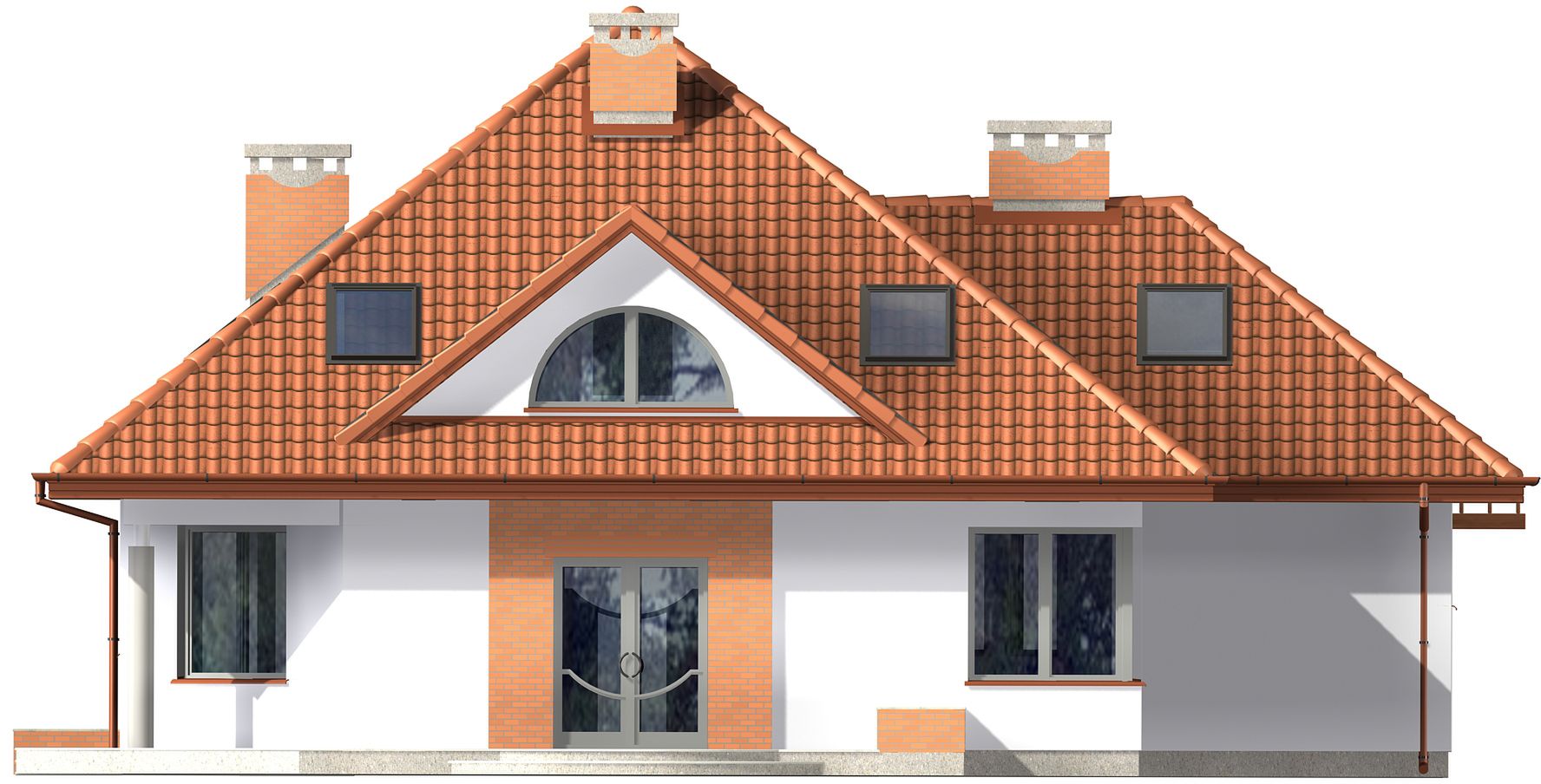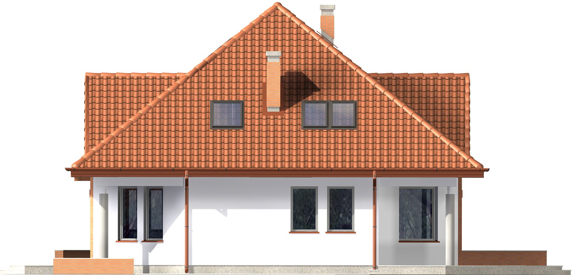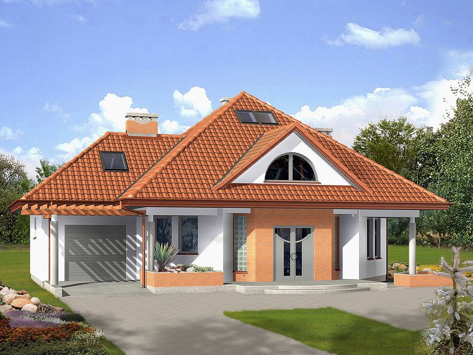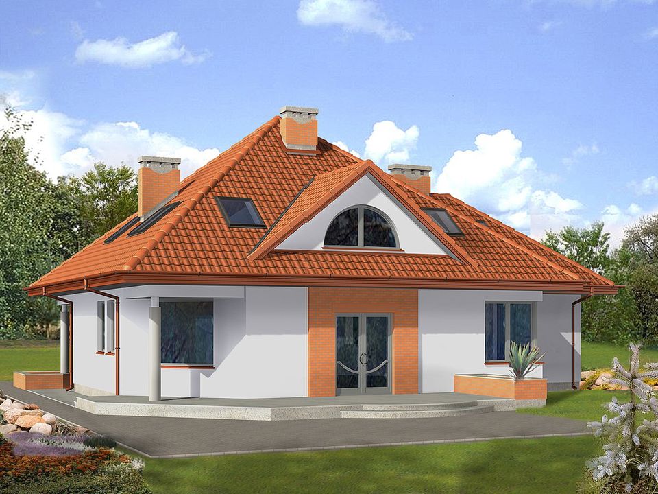 Graficzne opracowanie rzutów poglądowych widocznych na karcie projektu zostało wykonane przez Extradom.pl. Prezentowane przez Extradom.pl wizualizacje wykonane zostały przez autora projektu i należy poczytywać je jedynie za przykład i propozycję wykończenia, wizję architektoniczną autora projektu. Ostateczne wykończenie budynku może nastąpić na wiele sposobów. Szczegółowe rozwiązania zastosowane w oferowanej dokumentacji - w tym również ilość, lokalizacje i wygląd okien, drzwi, kominów - mogą w niewielkim stopniu różnić się od prezentowanej wizualizacji budynku.