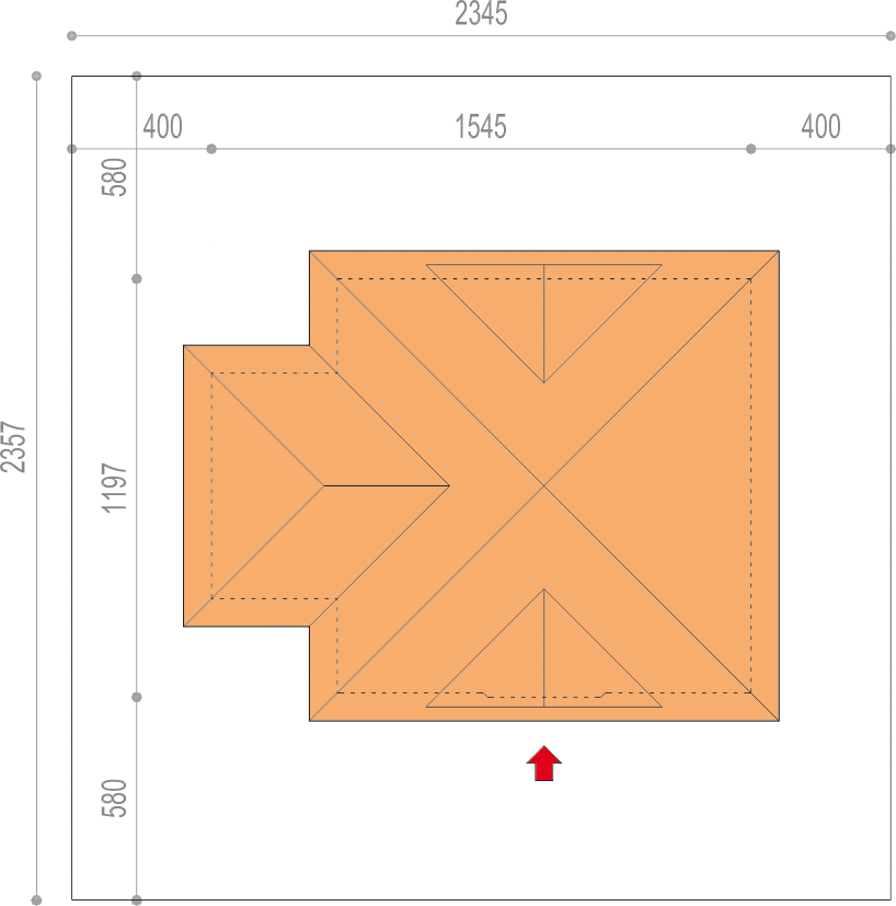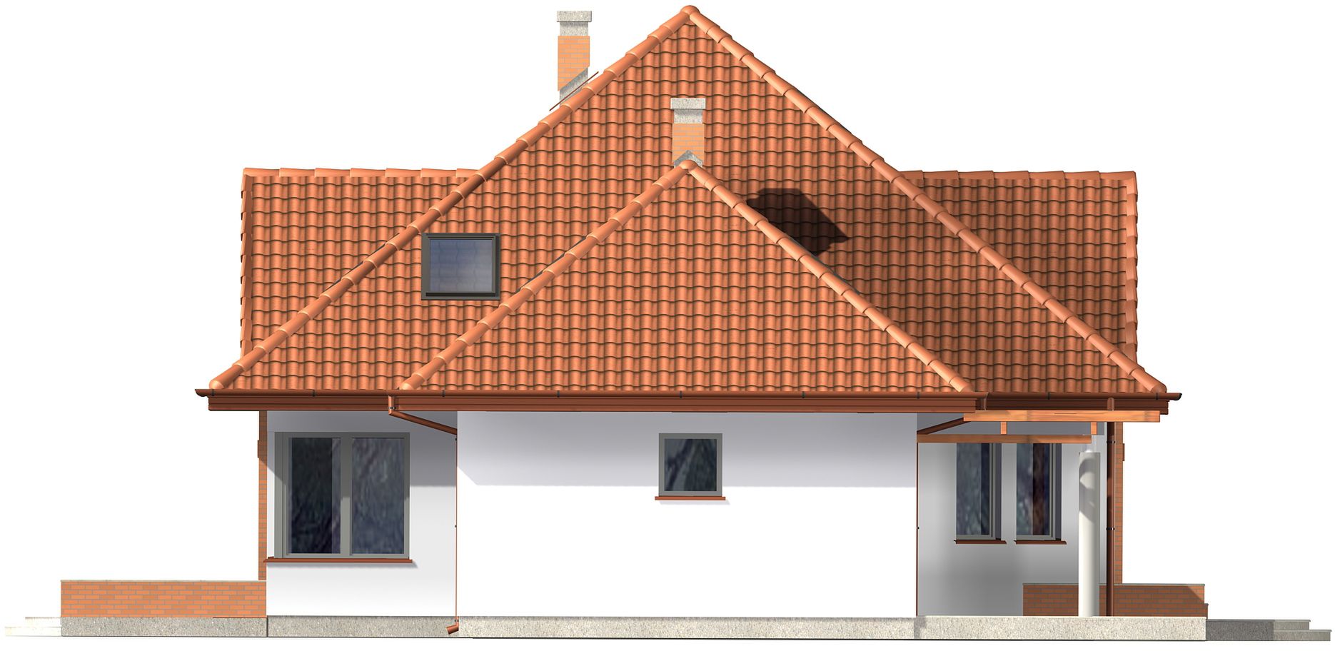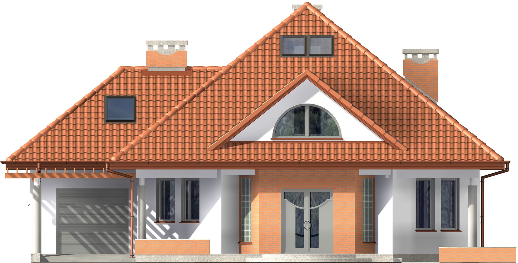Graficzne opracowanie rzutów poglądowych widocznych na karcie projektu zostało wykonane przez Extradom.pl. Prezentowane przez Extradom.pl wizualizacje wykonane zostały przez autora projektu i należy poczytywać je jedynie za przykład i propozycję wykończenia, wizję architektoniczną autora projektu. Ostateczne wykończenie budynku może nastąpić na wiele sposobów. Szczegółowe rozwiązania zastosowane w oferowanej dokumentacji - w tym również ilość, lokalizacje i wygląd okien, drzwi, kominów - mogą w niewielkim stopniu różnić się od prezentowanej wizualizacji budynku.