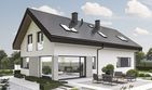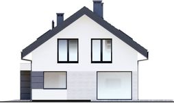 Graficzne opracowanie rzutów poglądowych widocznych na karcie projektu zostało wykonane przez Extradom.pl. Prezentowane przez Extradom.pl wizualizacje wykonane zostały przez autora projektu i należy poczytywać je jedynie za przykład i propozycję wykończenia, wizję architektoniczną autora projektu. Ostateczne wykończenie budynku może nastąpić na wiele sposobów. Szczegółowe rozwiązania zastosowane w oferowanej dokumentacji - w tym również ilość, lokalizacje i wygląd okien, drzwi, kominów - mogą w niewielkim stopniu różnić się od prezentowanej wizualizacji budynku.
