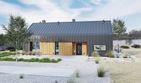 Graficzne opracowanie rzutów poglądowych widocznych na karcie projektu zostało wykonane przez Extradom.pl. Prezentowane przez Extradom.pl wizualizacje wykonane zostały przez autora projektu i należy poczytywać je jedynie za przykład i propozycję wykończenia, wizję architektoniczną autora projektu. Ostateczne wykończenie budynku może nastąpić na wiele sposobów. Szczegółowe rozwiązania zastosowane w oferowanej dokumentacji - w tym również ilość, lokalizacje i wygląd okien, drzwi, kominów - mogą w niewielkim stopniu różnić się od prezentowanej wizualizacji budynku.