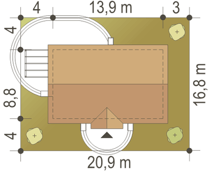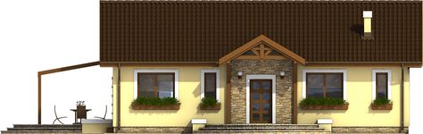 Graficzne opracowanie rzutów poglądowych widocznych na karcie projektu zostało wykonane przez Extradom.pl. Prezentowane przez Extradom.pl wizualizacje wykonane zostały przez autora projektu i należy poczytywać je jedynie za przykład i propozycję wykończenia, wizję architektoniczną autora projektu. Ostateczne wykończenie budynku może nastąpić na wiele sposobów. Szczegółowe rozwiązania zastosowane w oferowanej dokumentacji - w tym również ilość, lokalizacje i wygląd okien, drzwi, kominów - mogą w niewielkim stopniu różnić się od prezentowanej wizualizacji budynku.