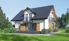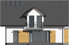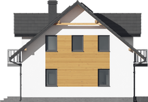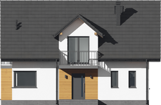 Graficzne opracowanie rzutów poglądowych widocznych na karcie projektu zostało wykonane przez Extradom.pl. Prezentowane przez Extradom.pl wizualizacje wykonane zostały przez autora projektu i należy poczytywać je jedynie za przykład i propozycję wykończenia, wizję architektoniczną autora projektu. Ostateczne wykończenie budynku może nastąpić na wiele sposobów. Szczegółowe rozwiązania zastosowane w oferowanej dokumentacji - w tym również ilość, lokalizacje i wygląd okien, drzwi, kominów - mogą w niewielkim stopniu różnić się od prezentowanej wizualizacji budynku.