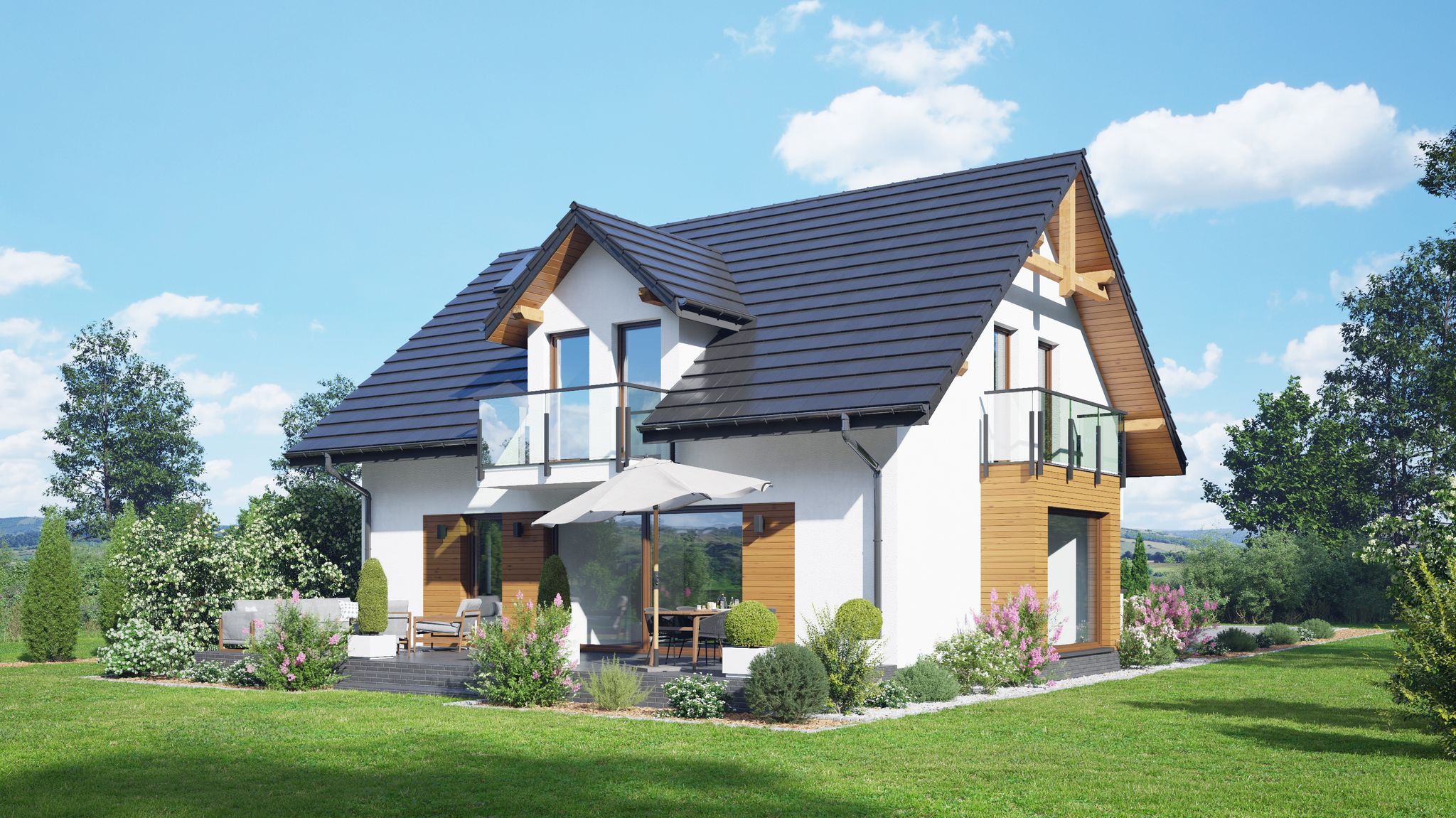 Odkryj innowacyjne rozwiązanie, które łączy funkcjonalność nowoczesnego dachu i fotowoltaiki w jednym. Kupując projekt domu otrzymasz bezpłatny poradnik SunRoof – Dach solarny 2 w 1, dzięki któremu dowiesz się, jak w prosty sposób zaoszczędzić na energii i zadbać o środowisko. Zainspiruj się nowoczesnymi technologiami!