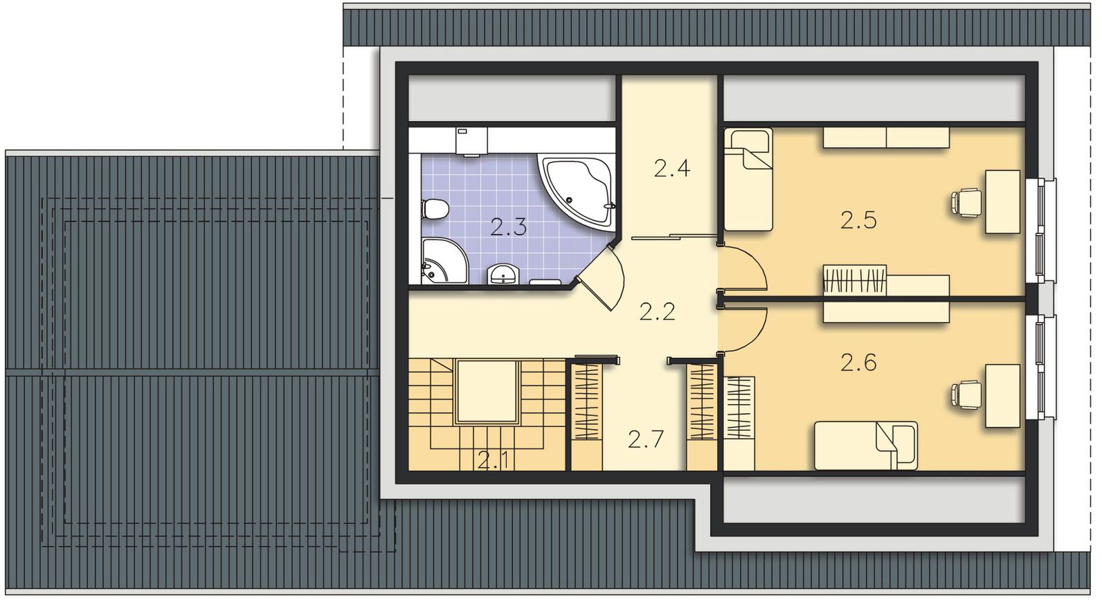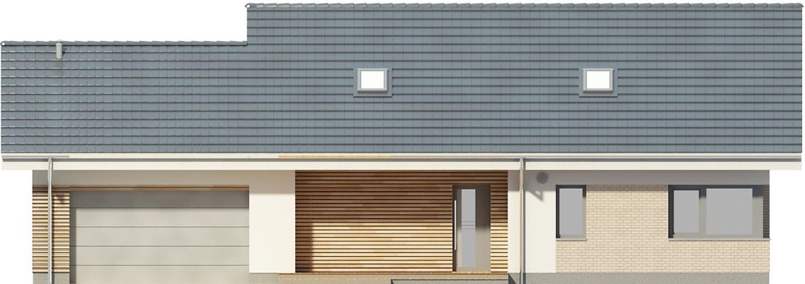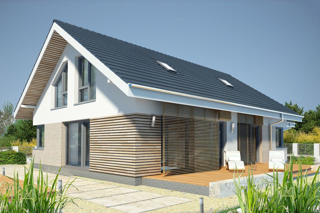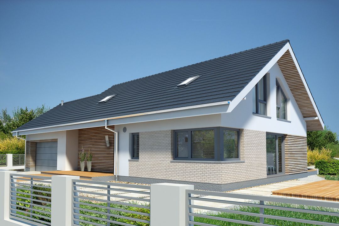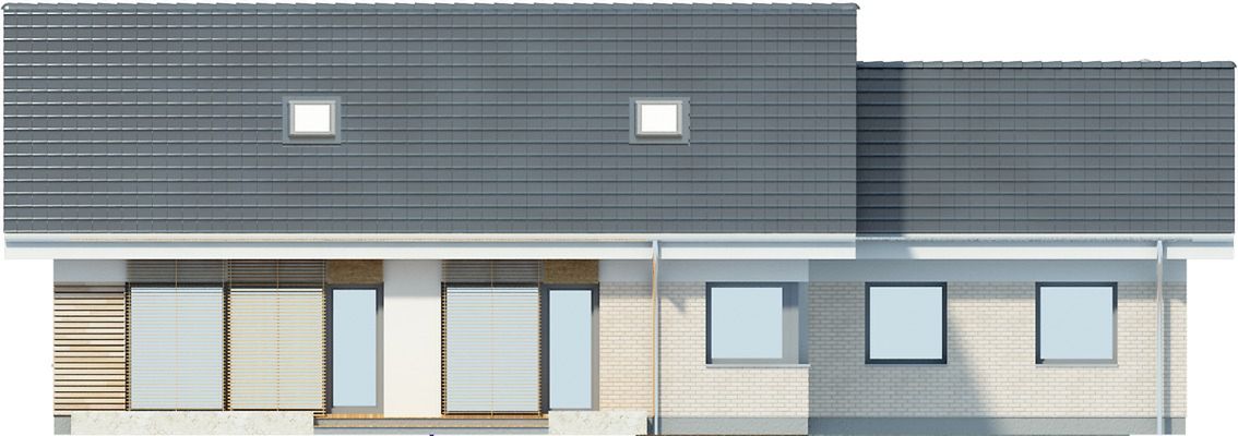 Graficzne opracowanie rzutów poglądowych widocznych na karcie projektu zostało wykonane przez Extradom.pl. Prezentowane przez Extradom.pl wizualizacje wykonane zostały przez autora projektu i należy poczytywać je jedynie za przykład i propozycję wykończenia, wizję architektoniczną autora projektu. Ostateczne wykończenie budynku może nastąpić na wiele sposobów. Szczegółowe rozwiązania zastosowane w oferowanej dokumentacji - w tym również ilość, lokalizacje i wygląd okien, drzwi, kominów - mogą w niewielkim stopniu różnić się od prezentowanej wizualizacji budynku.