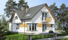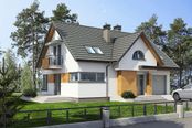 Graficzne opracowanie rzutów poglądowych widocznych na karcie projektu zostało wykonane przez Extradom.pl. Prezentowane przez Extradom.pl wizualizacje wykonane zostały przez autora projektu i należy poczytywać je jedynie za przykład i propozycję wykończenia, wizję architektoniczną autora projektu. Ostateczne wykończenie budynku może nastąpić na wiele sposobów. Szczegółowe rozwiązania zastosowane w oferowanej dokumentacji - w tym również ilość, lokalizacje i wygląd okien, drzwi, kominów - mogą w niewielkim stopniu różnić się od prezentowanej wizualizacji budynku.