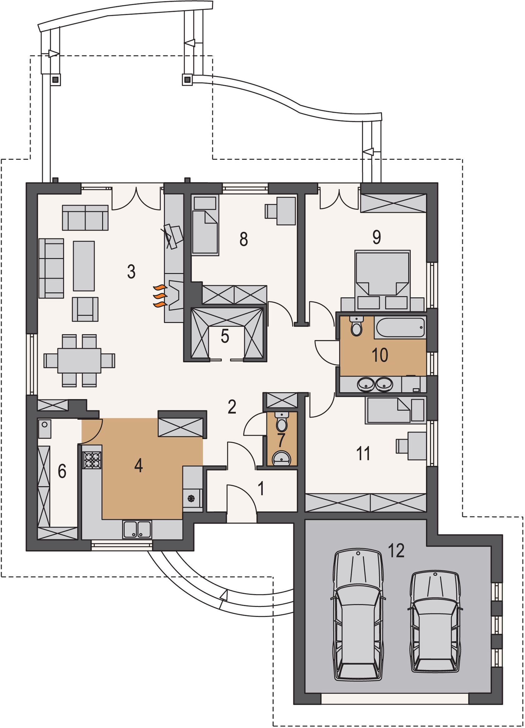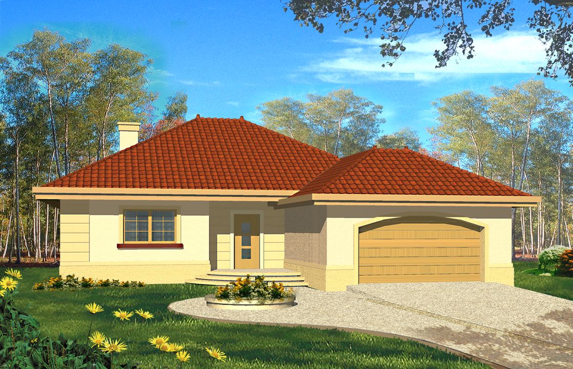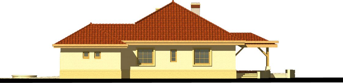 Graficzne opracowanie rzutów poglądowych widocznych na karcie projektu zostało wykonane przez Extradom.pl. Prezentowane przez Extradom.pl wizualizacje wykonane zostały przez autora projektu i należy poczytywać je jedynie za przykład i propozycję wykończenia, wizję architektoniczną autora projektu. Ostateczne wykończenie budynku może nastąpić na wiele sposobów. Szczegółowe rozwiązania zastosowane w oferowanej dokumentacji - w tym również ilość, lokalizacje i wygląd okien, drzwi, kominów - mogą w niewielkim stopniu różnić się od prezentowanej wizualizacji budynku.