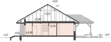 Konstrukcja ściany zewnętrzne - beton komórkowy gr.24cm + styropian Termo Organika Termonium Plus gr. 12cm; ściany wewnetrzne - bloczki z betonu komórkowego gr.24cm; ściany fundamentowe - bloczek betonowy; strop - Teriva-I; konstrukcja dachu - drewniana Instalacje W projekcie przewidziano instalacjie: c.o. i c.w.u., grzejniki płytowe, instalacje wodno-kanalizacyjna oraz elektryczne, wentylacja grawitacyjna. Wykończenie pokrycie dachowe - dachówka cementowa (w ramach adaptacji inny materiał); ścianki działowe na parterze - bloczki silikatowe; wyłaz stropowy Fakro - schody chowane w stropie, okna - PVC, wyłaz dachowy - Fakro.