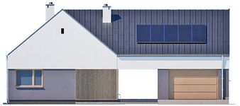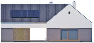 Graficzne opracowanie rzutów poglądowych widocznych na karcie projektu zostało wykonane przez Extradom.pl. Prezentowane przez Extradom.pl wizualizacje wykonane zostały przez autora projektu i należy poczytywać je jedynie za przykład i propozycję wykończenia, wizję architektoniczną autora projektu. Ostateczne wykończenie budynku może nastąpić na wiele sposobów. Szczegółowe rozwiązania zastosowane w oferowanej dokumentacji - w tym również ilość, lokalizacje i wygląd okien, drzwi, kominów - mogą w niewielkim stopniu różnić się od prezentowanej wizualizacji budynku.