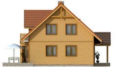 Ściany: drewniane, szkieletowe. Stropy: belki drewniane + wełna mineralna. Dach: blachodachówka, kąt nachylenia 42°. Ogrzewanie: gazowe.