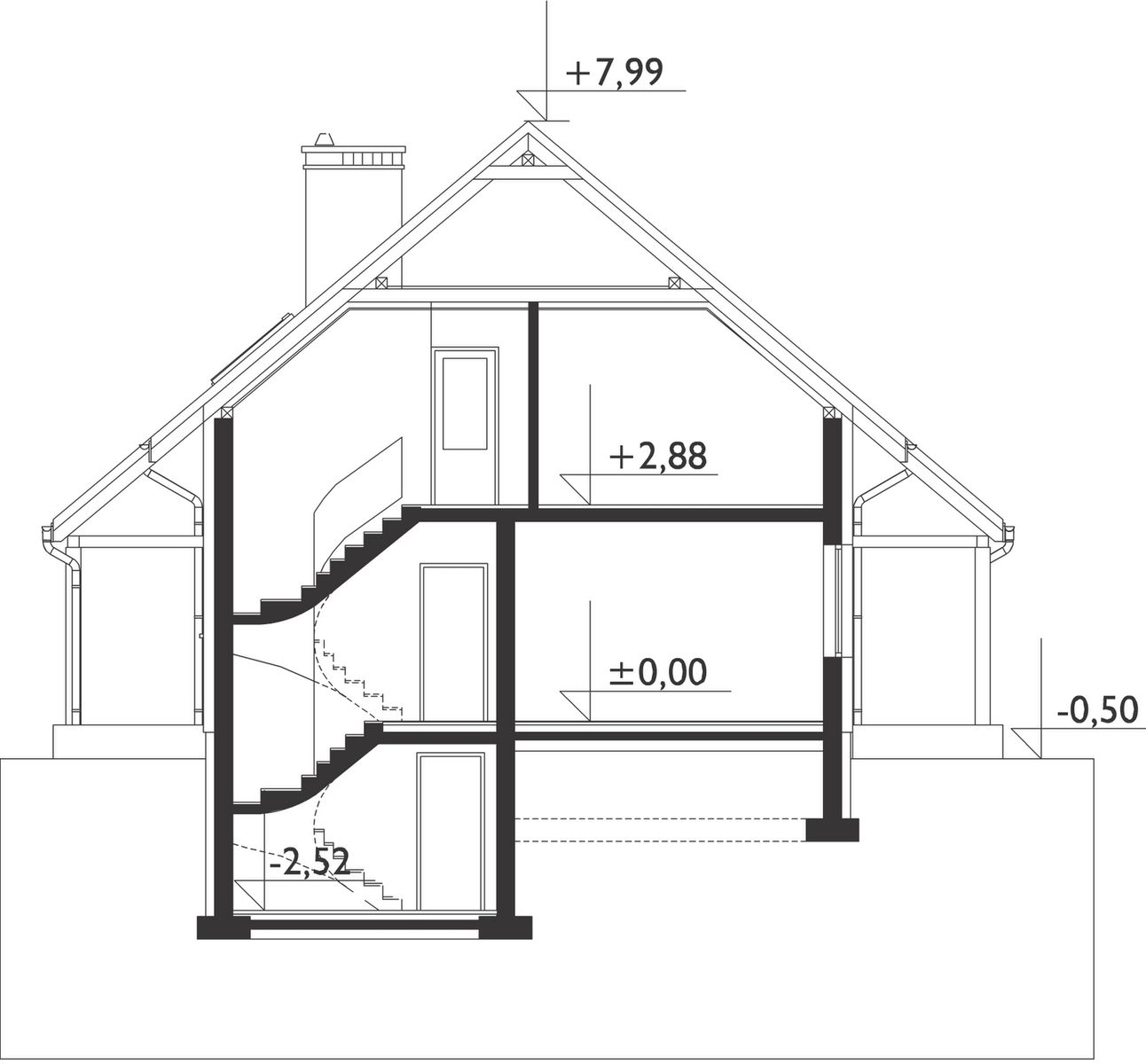 Wersja technologiczna: murowana - beton komórkowy. Strop: żelbetowy monolityczny. Typ schodów: płytowe żelbetowe. Konstrukcja dachu: drewniana krokwiowo-jętkowa. Typ ogrzewania: Kocioł na gaz. Dostępna wersja z pompą ciepła: Tak. Ściany zewnętrzne: 24 cm beton komórkowy. Ściany wewnętrzne: 24 cm beton komórkowy. Ściany wewnętrzne działowe: 12 cm beton komórkowy.